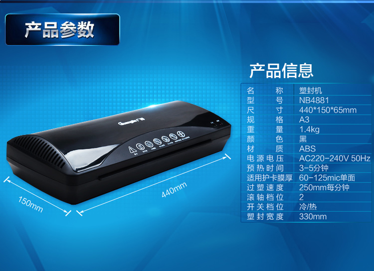 廣博 智能溫控黑金剛過塑機(jī)/塑封機(jī) 熱裱/冷裱過膠膜機(jī)A3 NB4881
