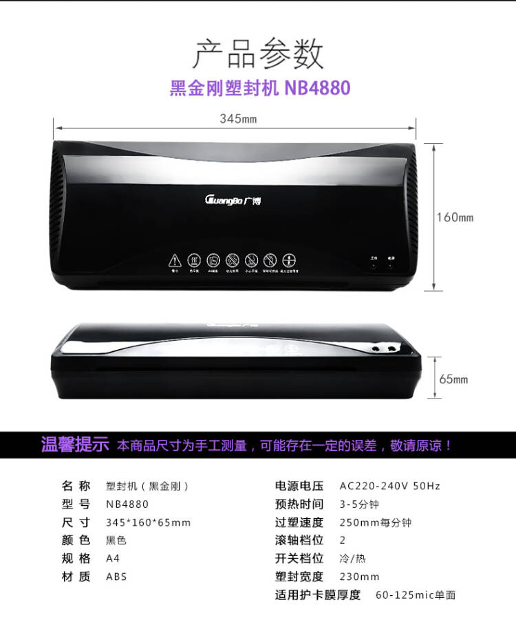 廣博 智能溫控黑金剛過(guò)塑機(jī)/塑封機(jī) 熱裱/冷裱過(guò)膠膜機(jī)A3 NB4881