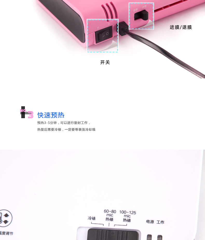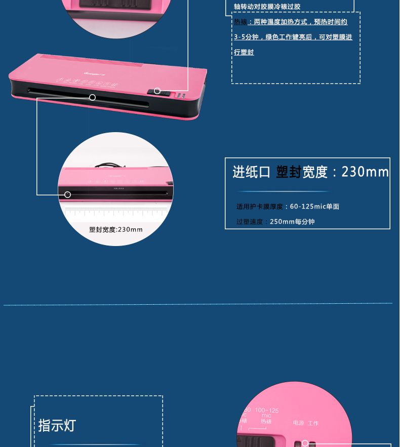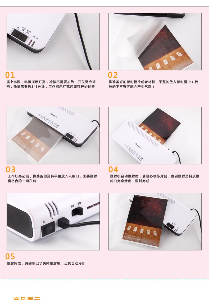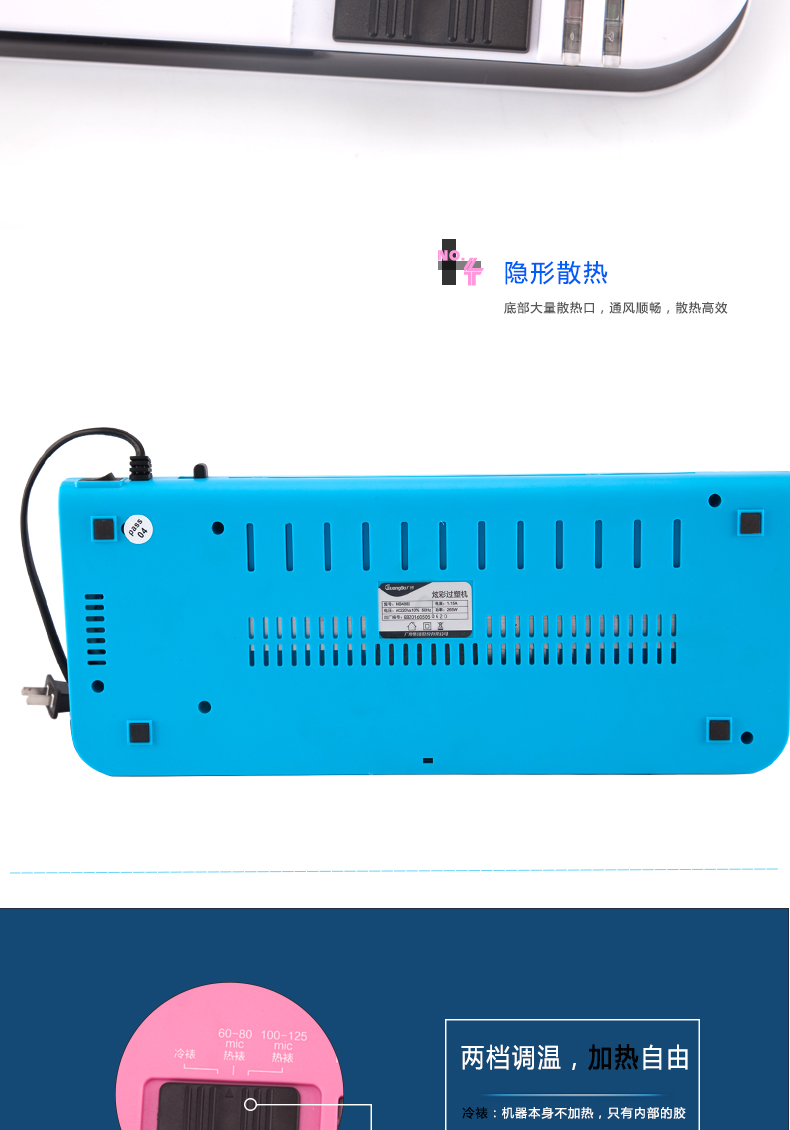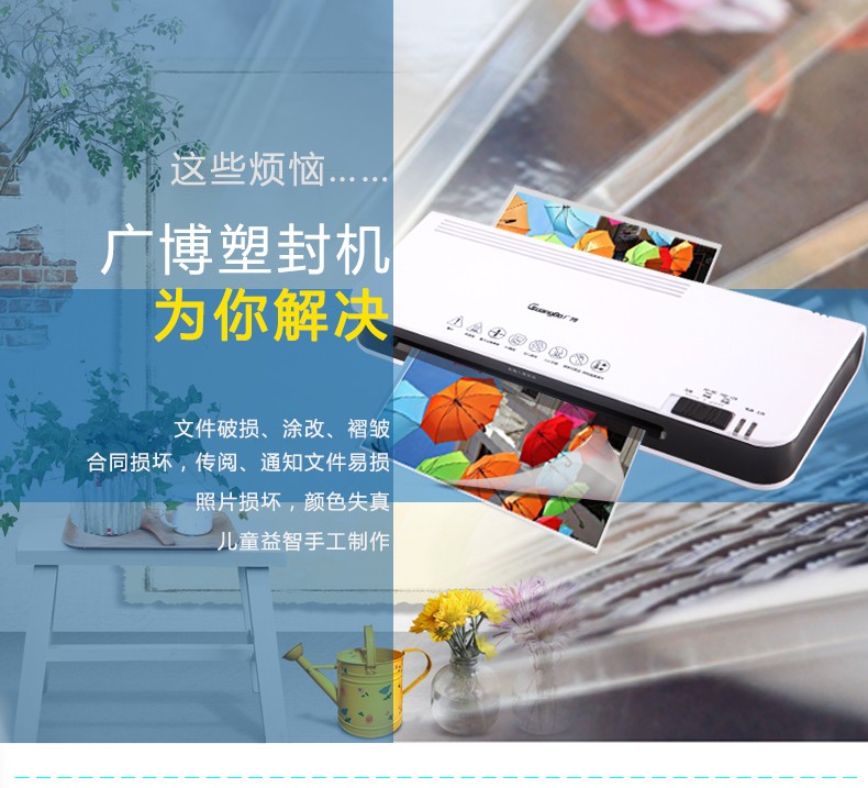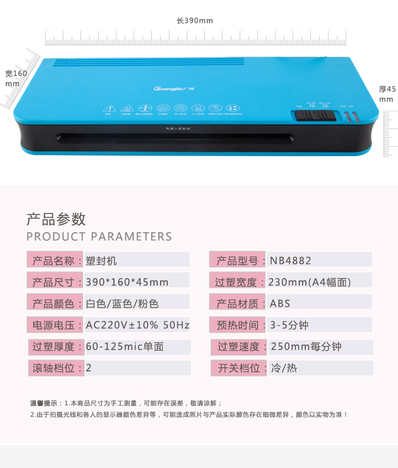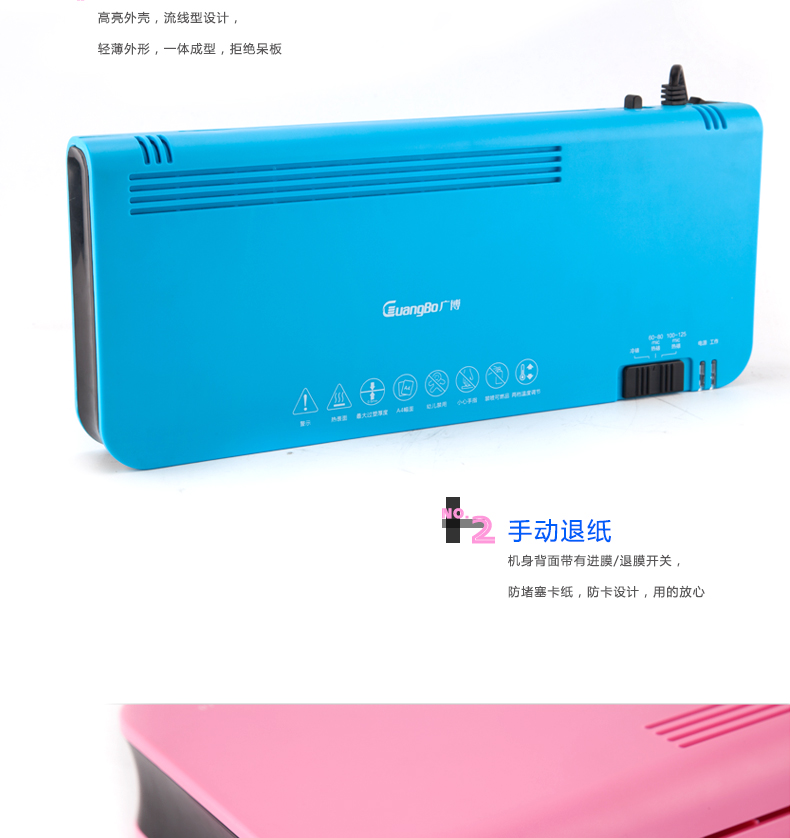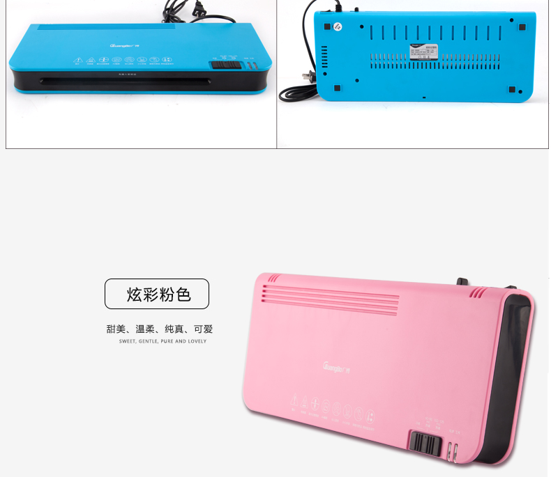廣博(GuangBo) 炫彩過塑機/塑封機 熱裱/冷裱A4 藍色 白色 粉色 NB4882